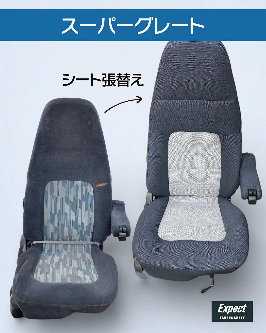 働くクルマの快適性を高めた自動車内装、働くヒトの機能性を追求したシート・テント、働く空間のイメージアップを提供する看板・プリントなど、武田シート工業ではこだわりのデザイン・性能・施工をご提供します。車両用、業務用のシート・テント・プリントでお困りの際はお気軽にご相談ください。
